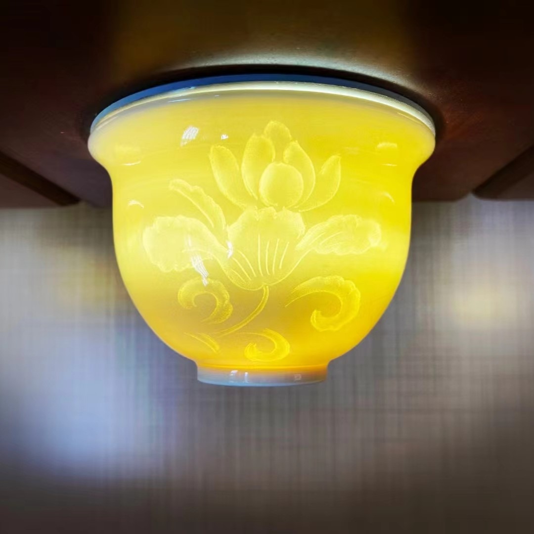 工藝:純手工拉坯、剔花,高溫燒制,24K純金鑲嵌